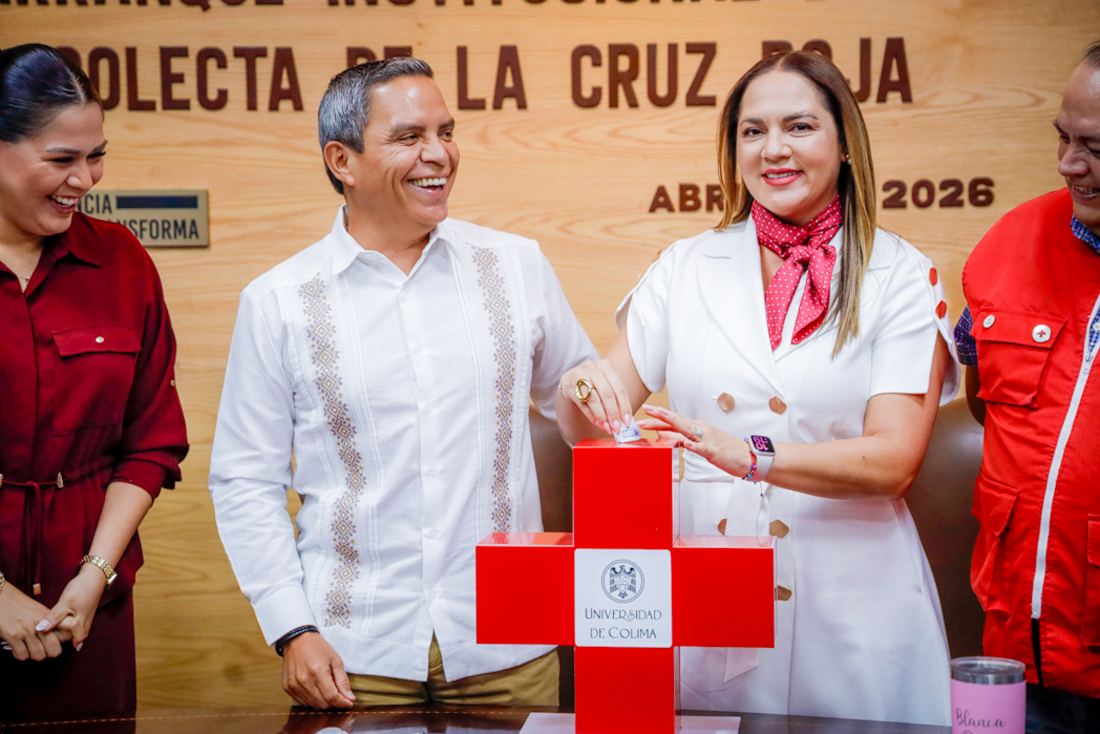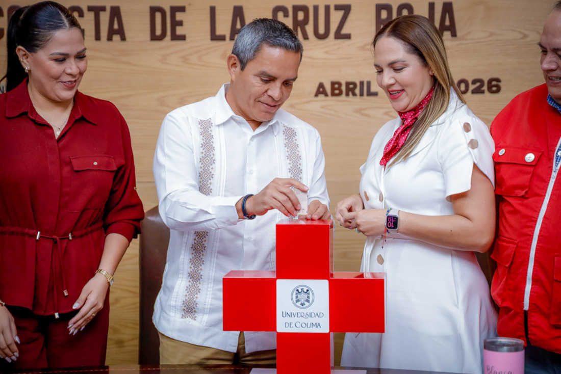 Este martes 14 de abril, la Universidad de Colima se sumó a la colecta anual de la Cruz Roja Mexicana 2026, que en esta ocasión lleva por lema “Esto que ves, lo hacemos juntos”. El arranque institucional se realizó en la sala de juntas de rectoría, en un evento al que acudieron autoridades universitarias, de la Cruz Roja y del Gobierno del Estado.