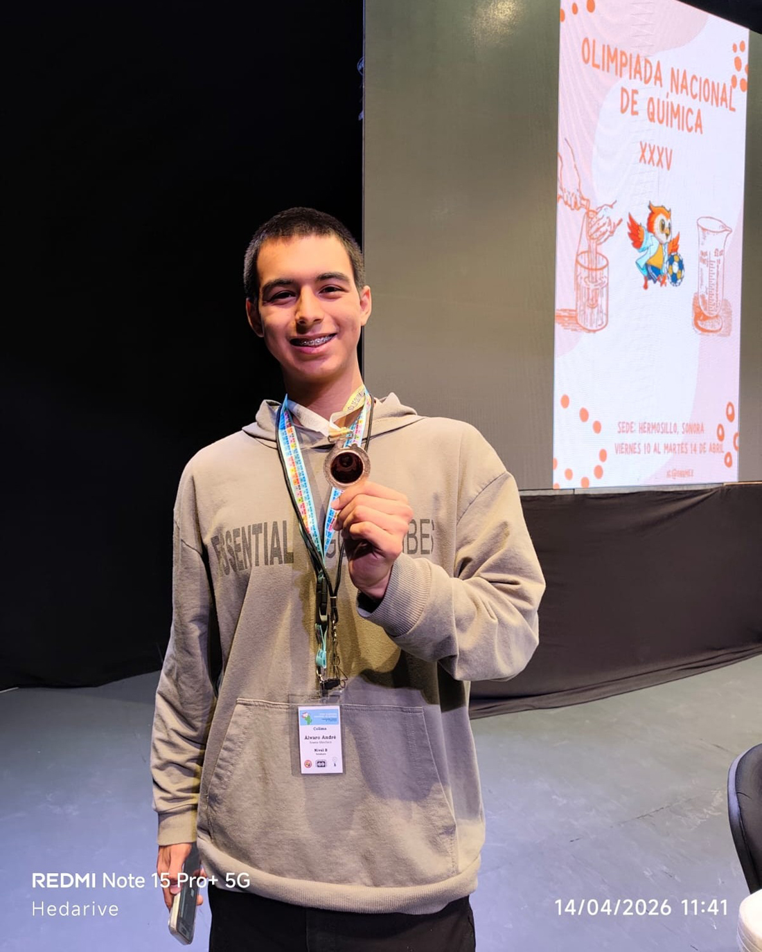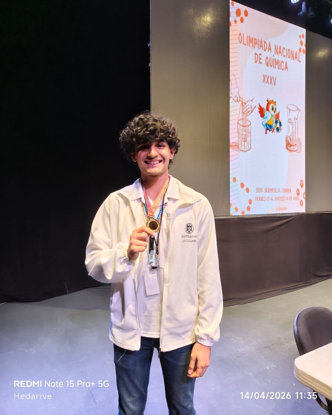 En la ceremonia de clausura de la XXXV Olimpiada Nacional de Química 2026, evento celebrado del 10 al 14 de abril en la Universidad de Sonora (Unison), dos estudiantes del Bachillerato 4 de la Universidad de Colima subieron al podio: Álvaro André Rosano Menchaca, quien obtuvo la medalla de oro en el Nivel B, y Leonardo Ángel Chávez Ávila, ganador de medalla de bronce en la misma categoría.