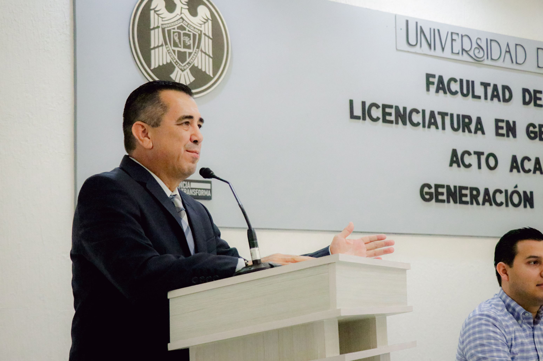 En representación del rector de la Universidad de Colima, Christian Jorge Torres Ortiz Zermeño, el delegado del campus Villa de Álvarez, Carlos Alberto Montes Carbajal, encabezó la ceremonia y tomó protesta a las y los nuevos profesionistas.
