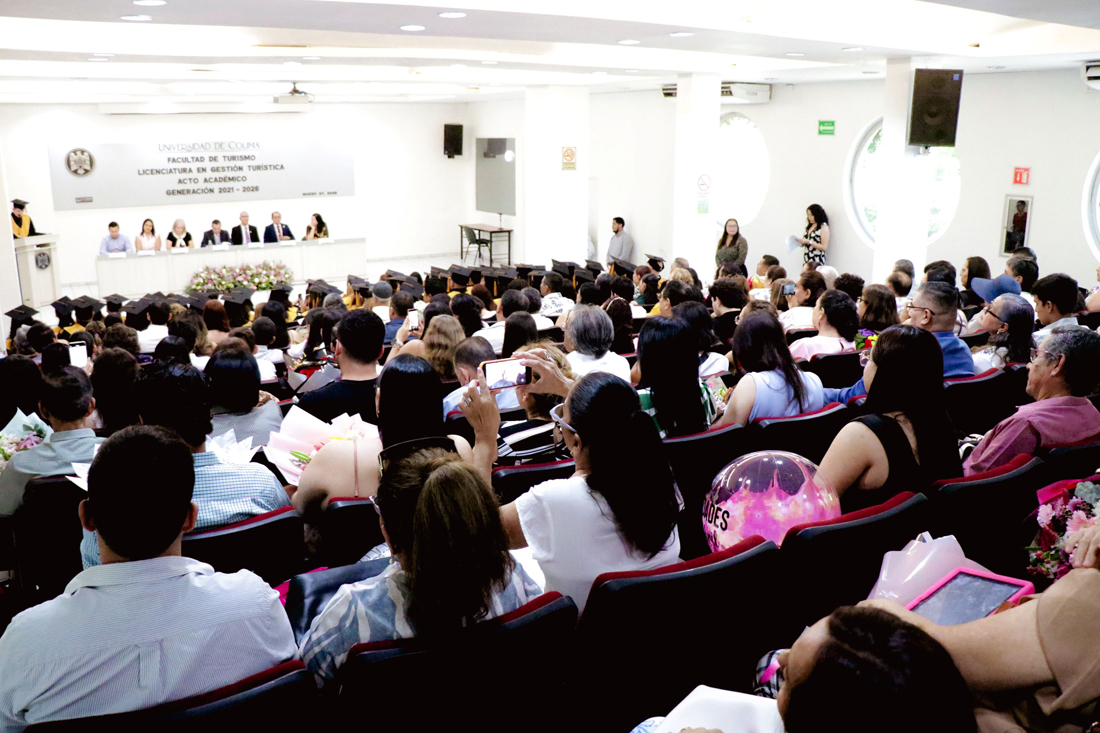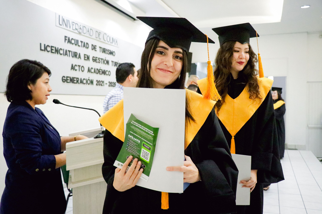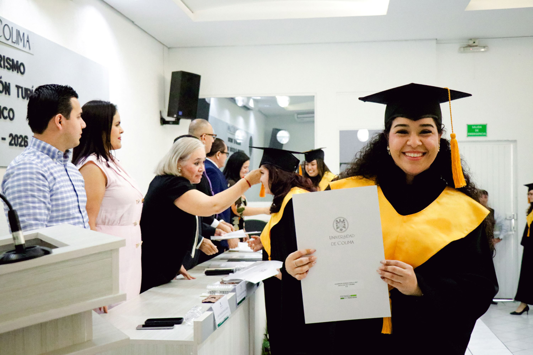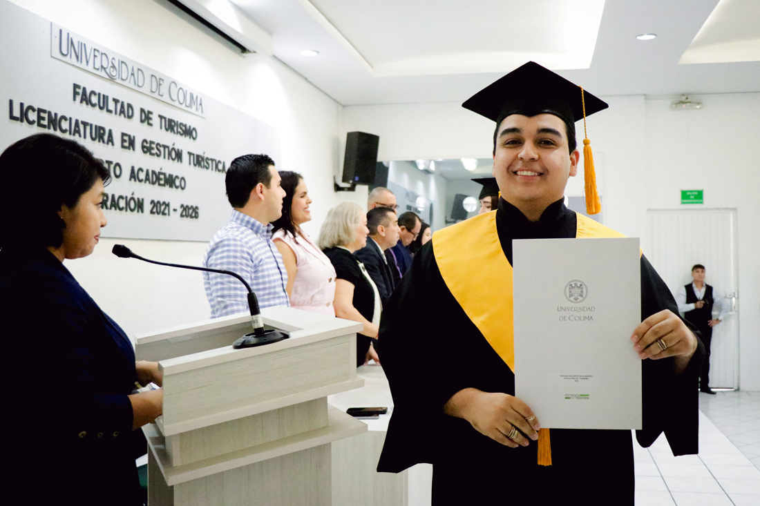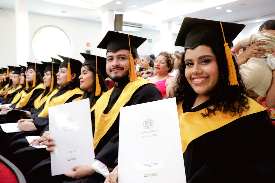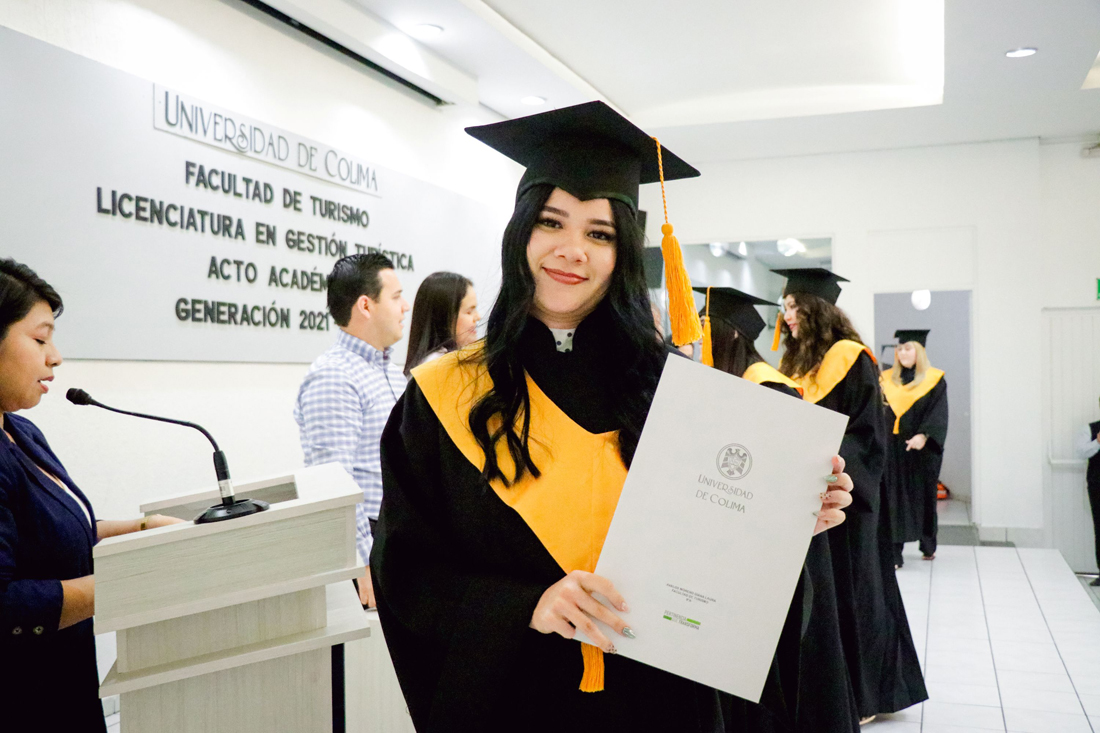 En un ambiente de alegría, orgullo y emotividad, la Universidad de Colima celebró la ceremonia de titulación y entrega de certificados de egreso de la Facultad de Turismo, donde 51 estudiantes de la Licenciatura en Gestión Turística recibieron su certificado de egreso, mientras que 38 nuevos profesionistas obtuvieron su título a través del Examen General de Egreso.
