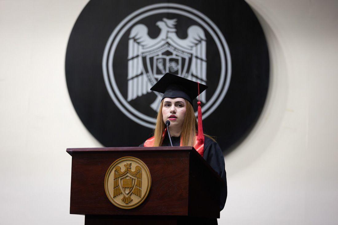Por su parte, la recién titulada Erika Cárdenas Gómez dijo, a nombre propio y de sus compañeros, que llegar hasta este día en el que reciben el documento que los avala como Licenciados en Derecho significó enfrentar días difíciles, numerosos retos académicos e incluso dudas en el camino. “Un camino que tuvo de todo: clases largas, exámenes que parecían imposibles, entregas a última hora, pero también risas, momentos inesperados y amistades que se fueron construyendo casi sin darnos cuenta”.