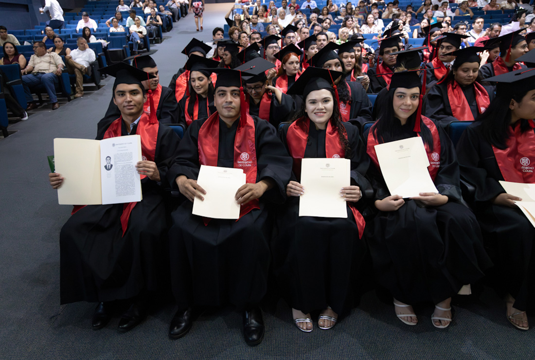 Finalmente, dijo que aun cuando han concluido sus estudios de licenciatura, como egresados no pierden su calidad de universitarios. En ese sentido, las y los invitó a afiliarse a la Federación de Egresados de la Universidad de Colima (FEUC). “A través de este organismo podrán estar en contacto con cursos de educación continua y programas de posgrado, entre otros beneficios”.