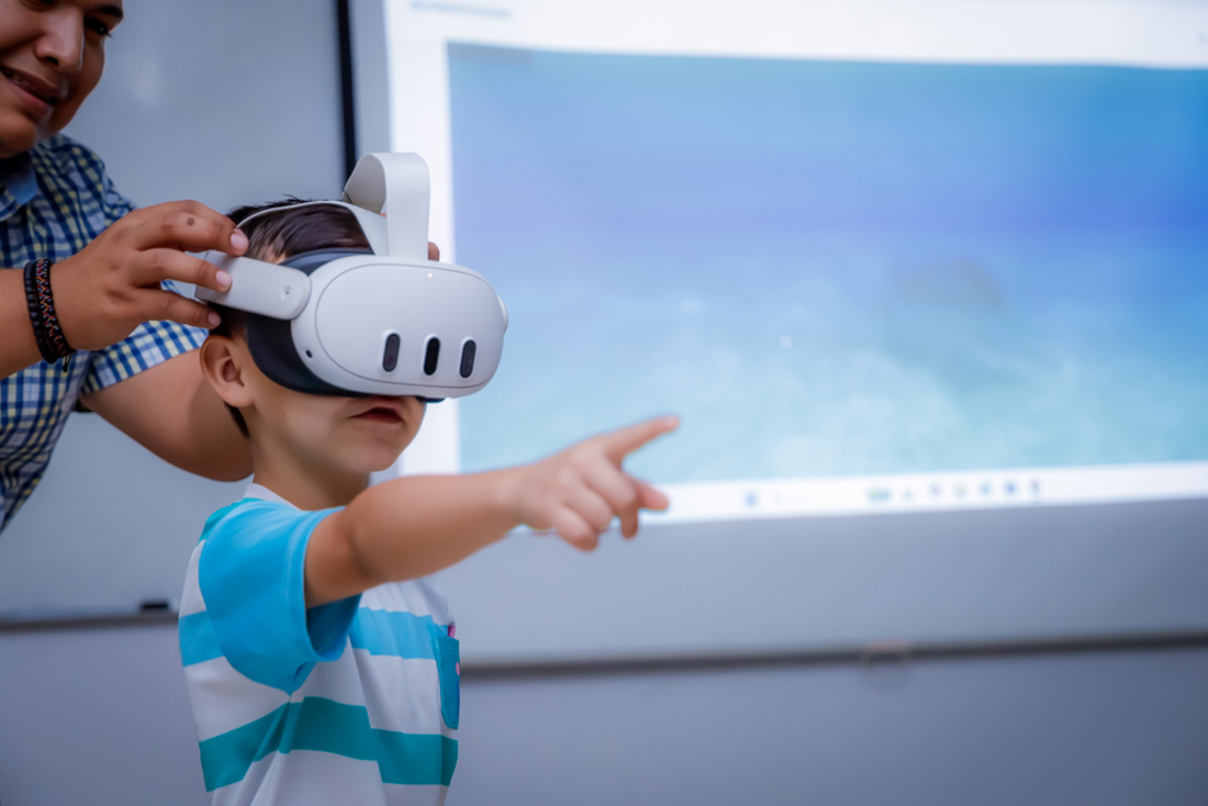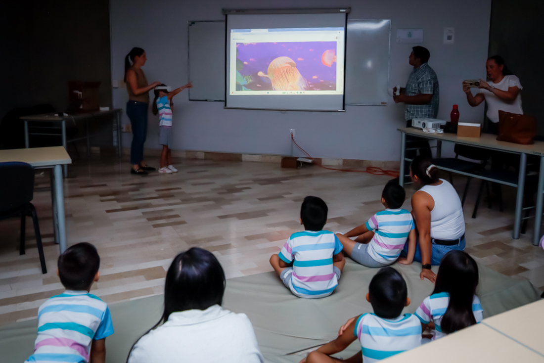 Más tarde, los pequeños exploraron nuevas formas de aprendizaje mediante lentes de realidad aumentada, en una actividad interactiva guiada por el profesor Joel Serrano. Entre la sorpresa y el entusiasmo, las niñas y niños convivieron con la tecnología a través del juego.