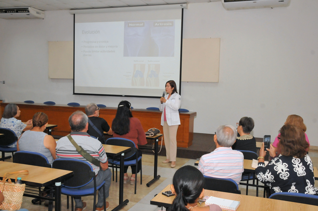 Carrazco Peña compartió que la salud articular es clave para un envejecimiento con buena calidad de vida, ya que permite moverse y sobre todo tener independencia de movilidad. Durante su charla, la investigadora compartió datos sobre qué es una articulación, cuáles son las causas del desgaste articular, qué es la osteoartrosis u osteoartritis, cuáles son sus síntomas, los factores de riesgo, prevención y tratamiento.