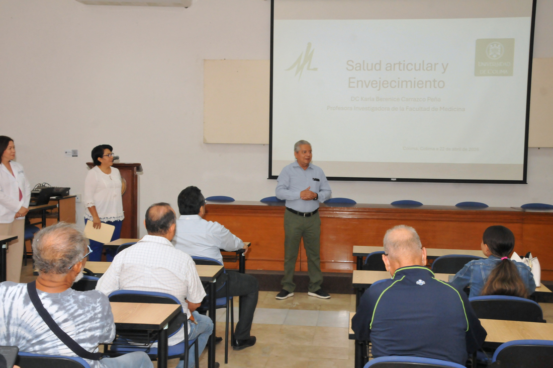 Moverse, comer bien y tener hábitos positivos diarios es la mejor estrategia para conservar las articulaciones sanas y una vida independiente, dijo la investigadora de la Universidad de Colima Karla Berenice Carrazco Peña, durante su conferencia “Salud articular en el envejecimiento”, llevada a cabo esta semana en el Archivo Histórico de la Universidad de Colima, como parte de las conferencias que realizan la Coordinación General de Investigación Científica y la Asociación de Jubilados y Pensionados.