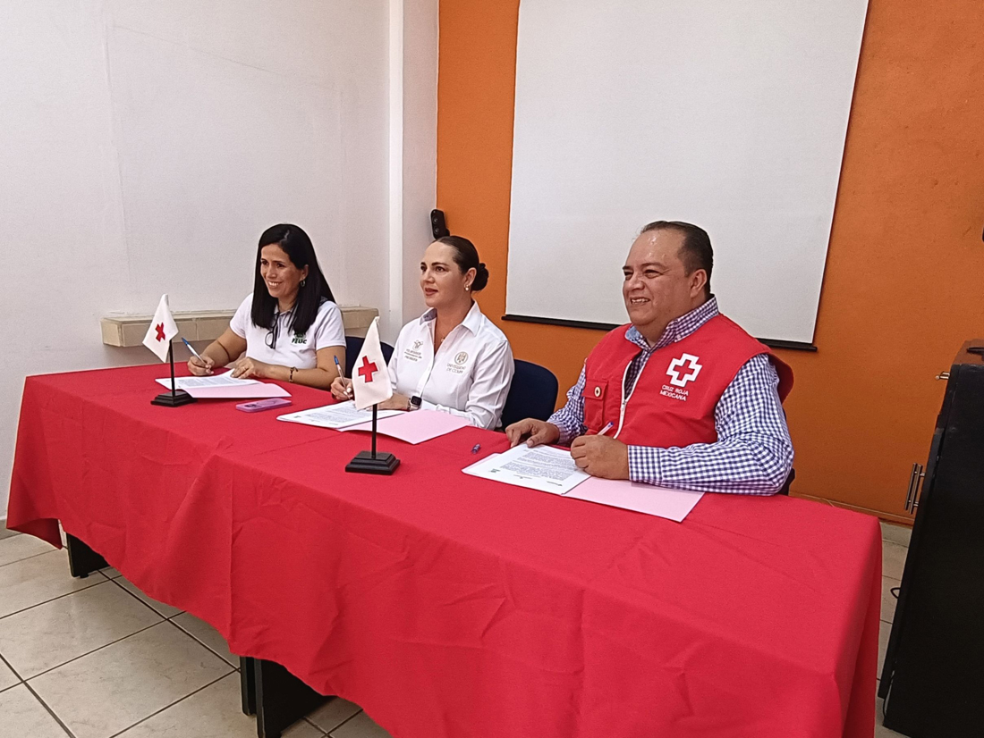 Firmaron el convenio, por la Cruz Roja, el delegado estatal Héctor Manuel Galindo Vázquez, y por la FEUC su presidenta Carolina Venegas Ochoa. El convenio incluye tarifas preferenciales, capacitación especializada y oportunidades de vinculación laboral.