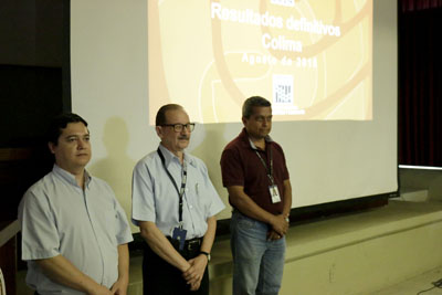 Estudiantes y el profesorado de la Facultad de Economía conocieron los resultados definitivos del Censo Económico 2014 del Instituto Nacional de Estadística y Geografía (INEGI) presentados por el coordinador estatal del INEGI, Octavio Grajeda Guzmán, y el delegado operativo del censo, Alfonso Radillo Contreras.