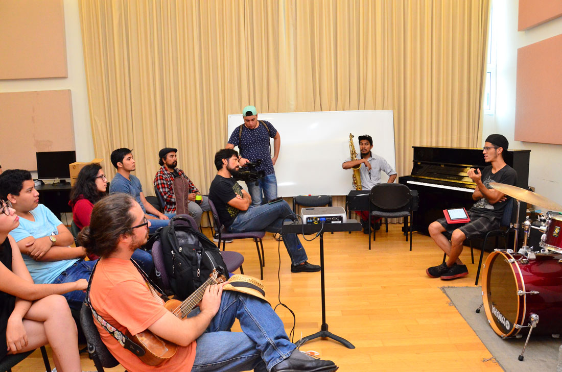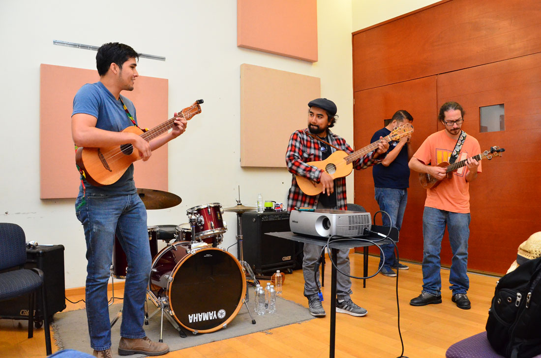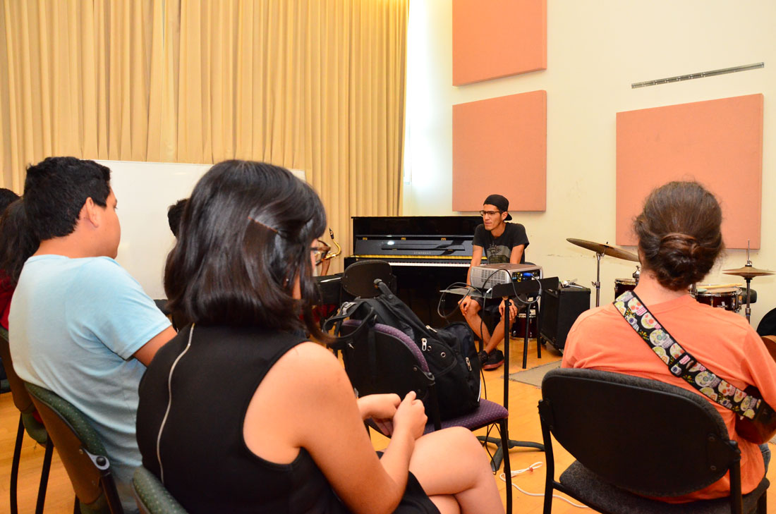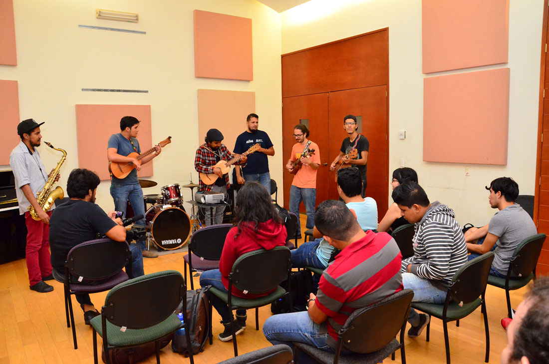 Una clase para reflexionar sobre el camino profesional y la identidad en la música, fue la que impartió contrabajista mexicano Vico Díaz, quien estuvo acompañado con sus compañeros del Grupo “Toktli”.
