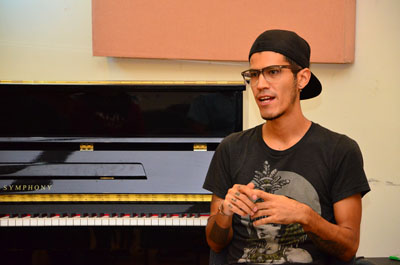 “Es un son en el cual la guitarra le declara su amor a la jarana”, explicó Kamál González para ilustrar la interacción de ambos instrumentos. Y así improvisaron unas coplas: “Es tan grata esta reunión / con los versos tan constantes / porque ahora los estudiantes / alegran su corazón. / Contentos en el salón / muy de colores me pinto / porque el verso no es extinto / de forma tan eficaz / en el Festival de Jazz con jarana y requinto”.