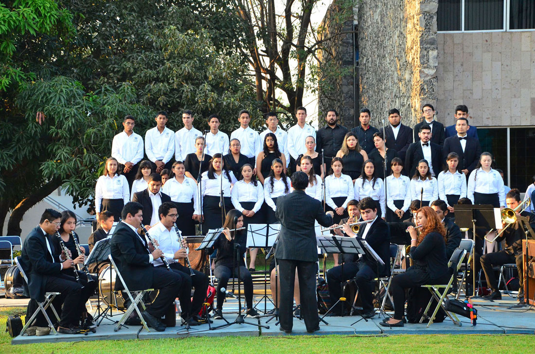 La ceremonia inició con los honores a la bandera, acto tras el cual el rector, en compañía de alumnas del Bachillerato 4, izó el lábaro patrio. Posteriormente, la Banda Sinfónica de la UdeC interpretó el popurrí mexicano: “Música en armonía”, bajo la dirección del maestro José Antonio Frausto Zamora.