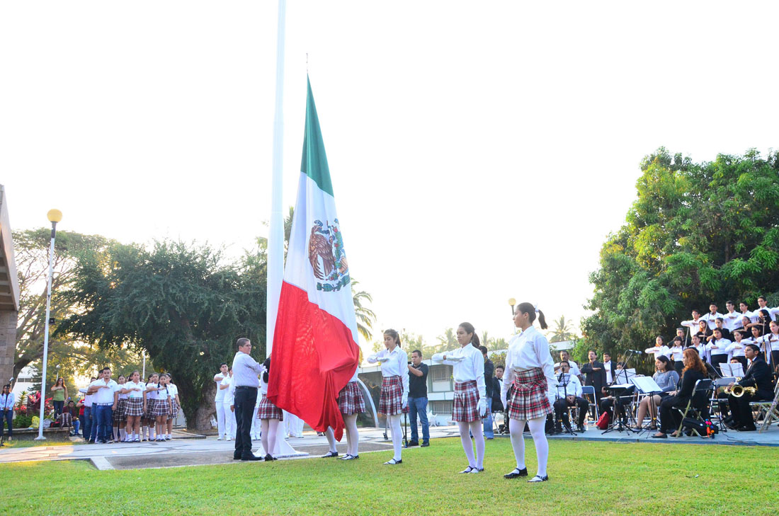 Durante la ceremonia cívica conmemorativa del 127 aniversario de la Bandera de México, realizada este viernes en la explanada de rectoría, José Eduardo Hernández Nava, rector de la Universidad de Colima destacó la importancia que tiene promover la formación cívica desde la propia Casa de Estudios.