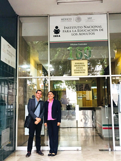 Los investigadores de la Universidad de Colima, Ana Uribe y José Manuel de la Mora, visitaron las instalaciones del Instituto Nacional para la Educación de los Adultos (INEA) para presentar avances del Proyecto de Investigación “Experiencias educativas de migrantes mexicanos en programas de Plazas Comunitarias en California”, que financian el Consejo Nacional de Ciencia y Tecnología (CONACyT) y el Instituto Nacional para la Evaluación de la Educación (INEE).