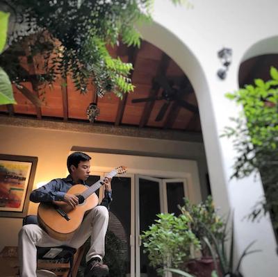 Bruno Guedea, quien se encuentra ya instalado en Wellington, Nueva Zelanda, donde empezará sus clases el próximo lunes 13 de julio, dijo que fue en el 2017 cuando empezó a tomar algunos talleres abiertos de guitarra en el IUBA, después fueron cursos de perfeccionamiento con el maestro Simone Iannarelli, y en 2018 inició con el Bachillerato Técnico en Artes.