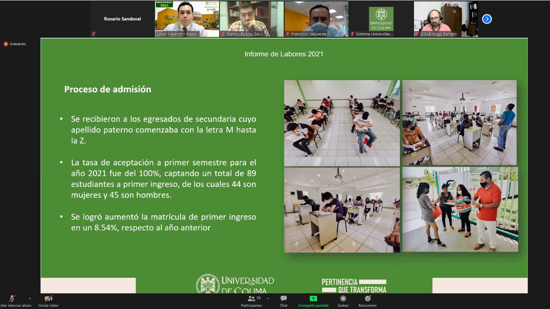 Durante la presentación de su informe, César Alejandro Meza destacó que pese a la pandemia por COVID-19, se mantuvo una atención oportuna a las dudas vía telefónica, por WhatsApp y Facebook, hubo siempre trabajadores de guardia, de acuerdo con el semáforo epidemiológico y la normativa institucional, así como tutorías grupales e individuales con alumnos en riesgo de dejar sus estudios.