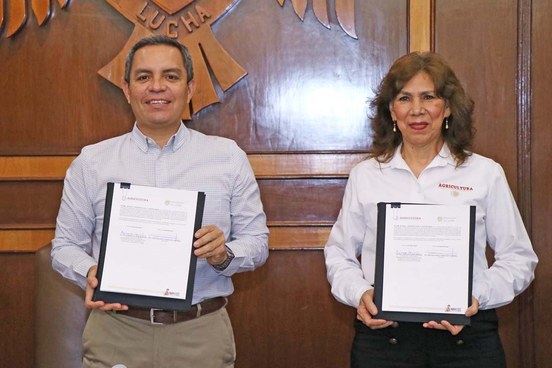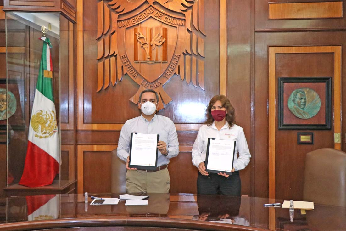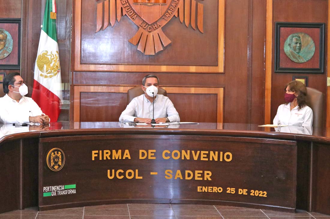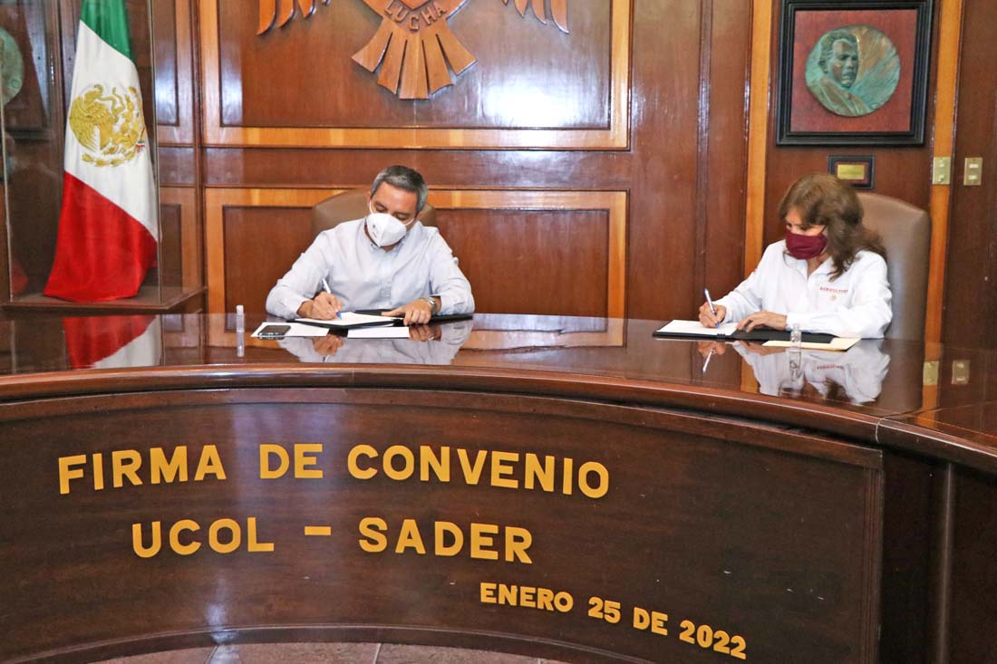 Este martes la Universidad de Colima, representada por su rector, el Dr. Christian Jorge Torres Ortiz Zermeño y la Oficina de Representación de la Secretaría de Agricultura y Desarrollo Rural (SADER) en el estado, a cargo de la Ing. María Esmeralda López Mendoza, firmaron un convenio de colaboración para realizar programas, proyectos y actividades en común y generar la transferencia de conocimiento entre ambas instituciones.